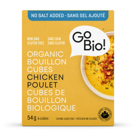 Ingredients: Non-GMO corn starch,* Non-hydrogenated palm oil,* Onion,* Parsnip,* Chicken meat powder,* Lovage,* Rosemary,* Thyme,* Chicken fat,*Turmeric,*Garlic,*Nutmeg,*Yeast extract, Natural chicken flavouring, Rosemary extract*. (*organic)