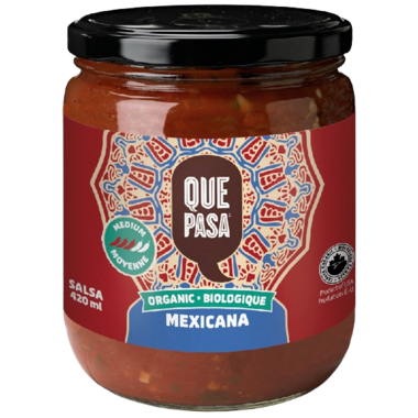 Diced tomatoes* in tomato juice*, tomato puree* (water, tomato paste*, citric acid), onions*, jalapeno peppers* in brine (jalapeno peppers*, vinegar*, sea salt), red bell peppers*, dried onions*, dried garlic*, sea salt, apple cider vinegar*, cilantro*, citric acid, xanthan gum, natural flavour, cumin*. *Organic.