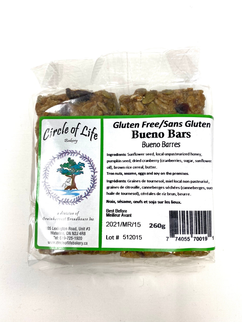 Sunflower seed, local unpasteurized honey, pumpkin seed, dried cranberry (cranberries, sugar, sunflower oil), brown rice cereal, butter.