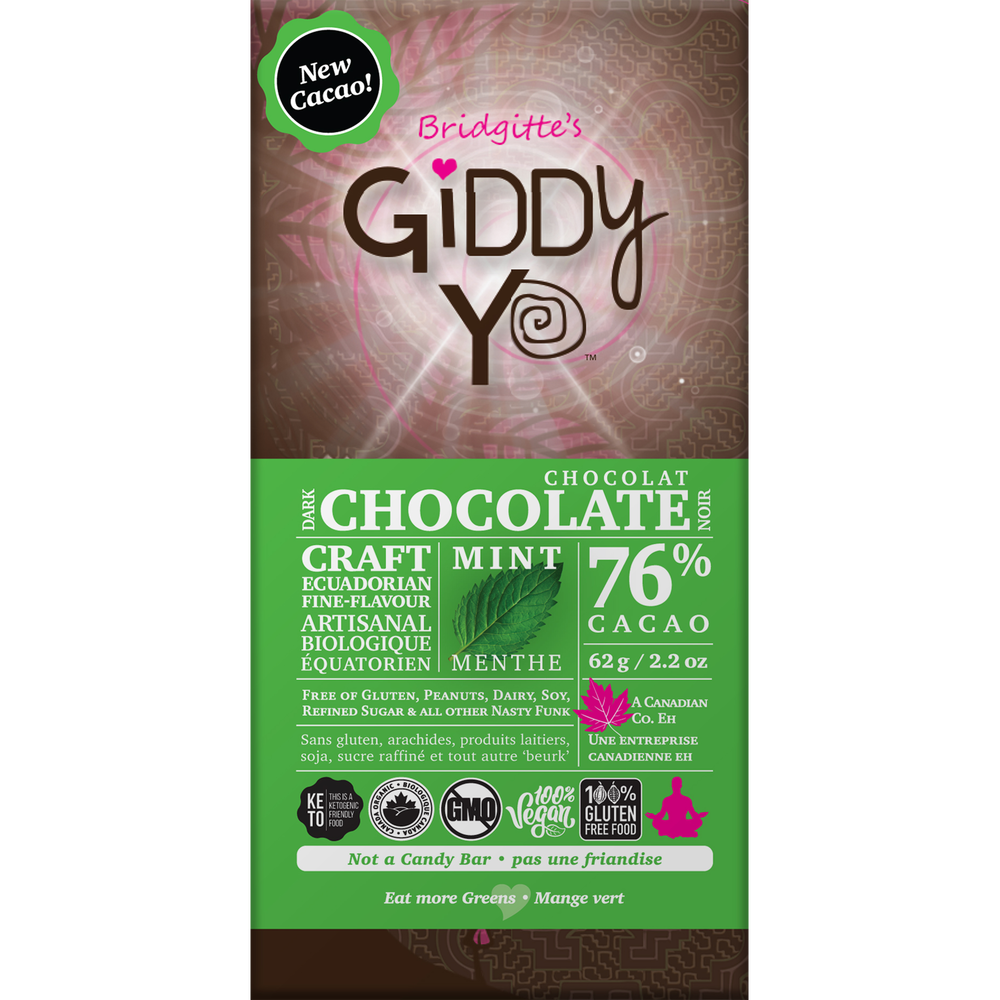 Ingredients: Cert. Organic Arriba criollo Cacao Paste, Cert. Organic Raw Unrefined Cane Juice Crystals, Cert. Organic Arriba criollo Cacao Butter, Cert. Organic Peppermint essential oil, and a heaping dose of Love & Gratitude.
