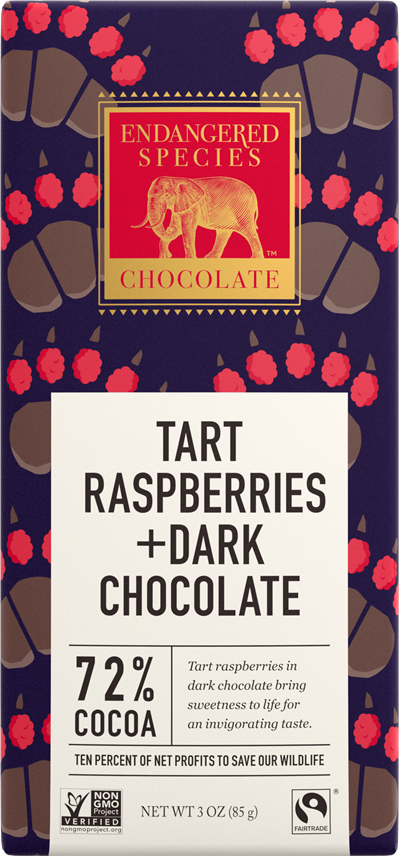 Ingredients: Bittersweet Chocolate (Chocolate Liquor, Sugar, Cocoa Butter, Soy Lecithin, Vanilla), Dried Raspberries, Coconut Oil.