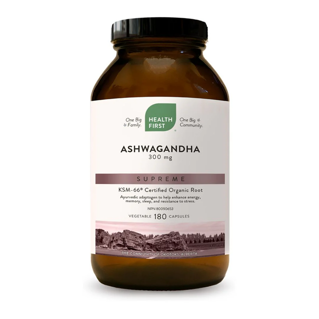 Ashwagandha Supreme from Health First features a form of ashwagandha that is backed by double-blind clinical studies. It has an NPN number registered with Health Canada and approved health claims for helping to increase resistance to stress and anxiety in individuals with a history of chronic stress, thereby improving their overall quality of life. It also has a claim for athletic support and can be used as a workout or exercise supplement.