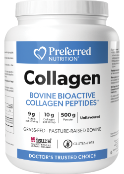 Preferred Nutrition Collagen features high-quality, grass-fed, pasture-raised bovine collagen peptides. Each daily scoop provides 10 g of absorbable, hydrolyzed collagen and 9 g of protein. This flavourless and odourless powder mixes easily into hot and cold beverages to actively support beautiful skin from the inside out.