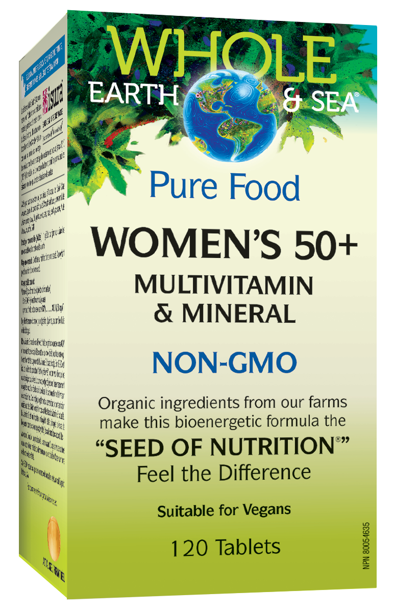 The Pure Food Women’s 50+ Multivitamin & Mineral contains vitamin and mineral complexes important for women over 50, including calcium and magnesium in a 2:1 ratio, vitamins D3 and K2, alpha-lipoic acid, and vitamin C. Easily absorbed active forms of folate and other B vitamins are also included, alongside enzymes, antioxidants, and phytonutrients for energy and vitality, making the vegan-friendly Women’s 50+ Multi ideal for older women looking for an organic, raw-food-based multi.